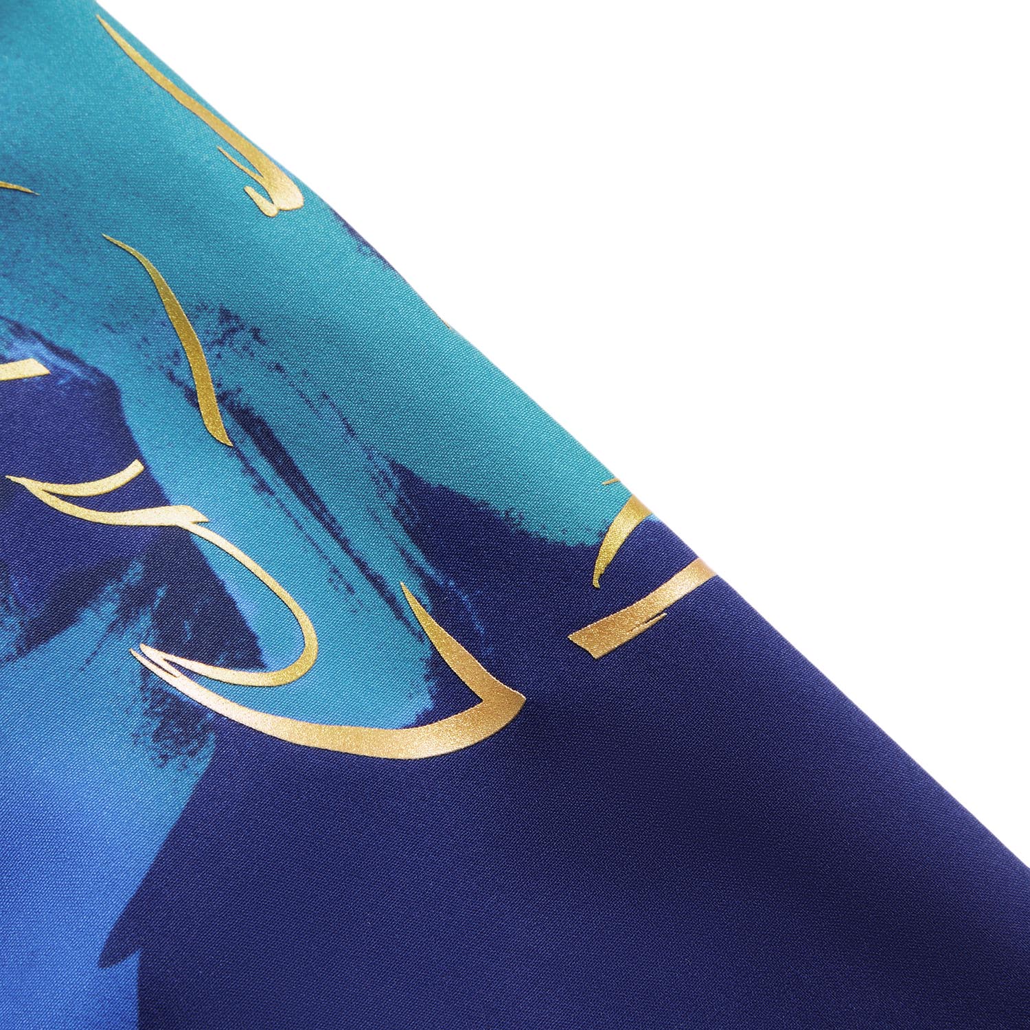 in Blau mit auffällige Designelemente (z.B. auf Schulter)